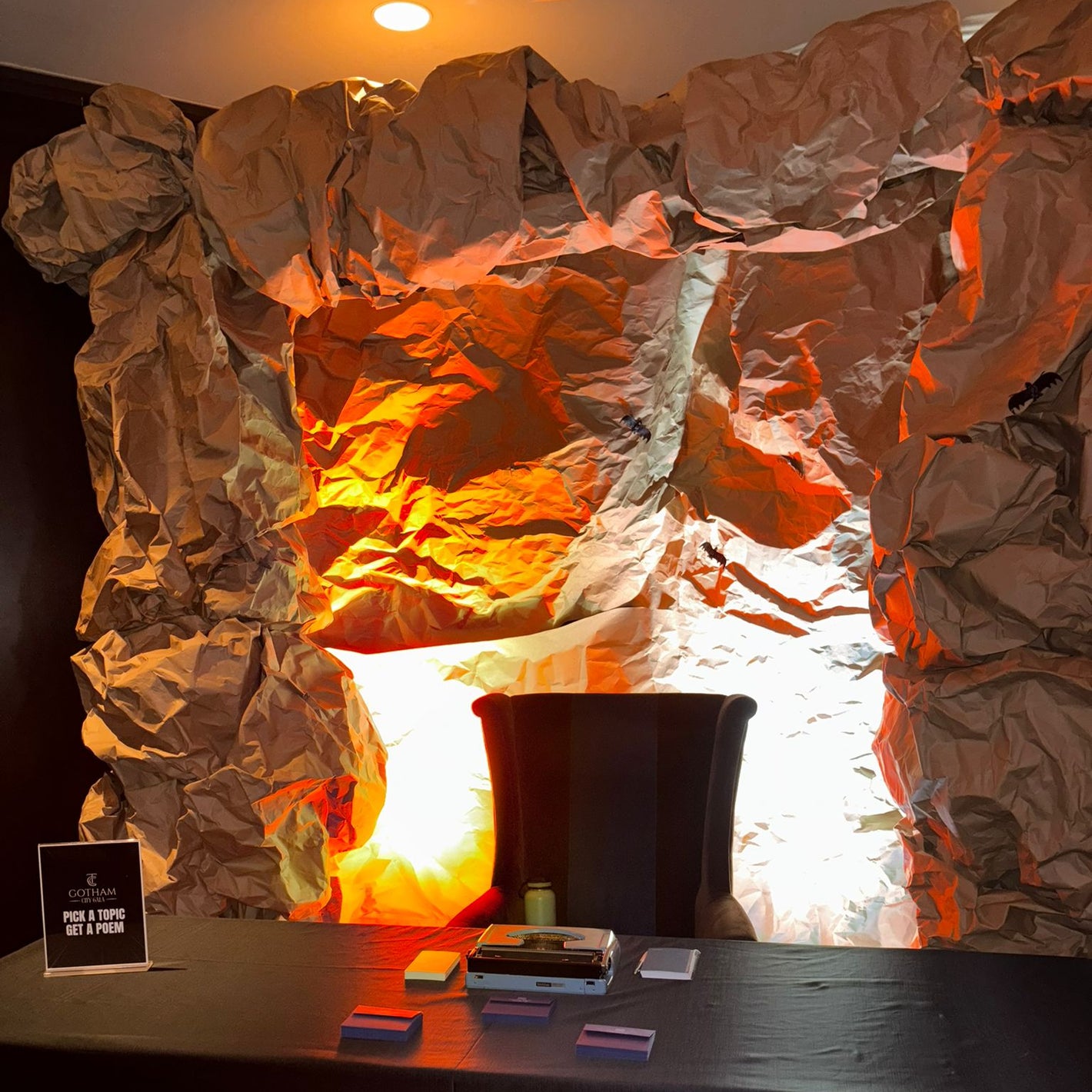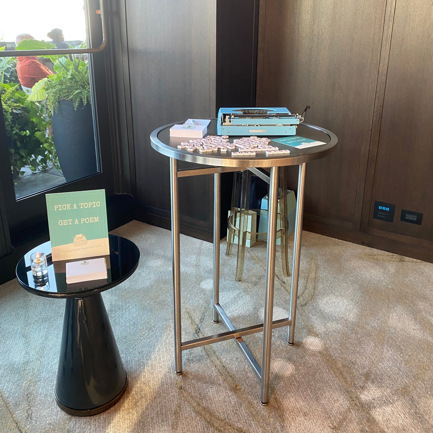 We provide everything needed for an inviting experience: tabletop signs, card stock paper, colourful envelopes, letter tiles to tinker with while we write, and of course, our vintage manual typewriters.